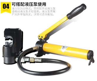 6、分離式壓接鉗的特性:可采用手動式、電動式和汽油發(fā)動機(jī)單動式液壓油泵浦;規(guī)格小、很輕,非常合適在高處和室內(nèi)空間窄小的地區(qū)工作 ;磨具購買:同EP-431、EP-510C;